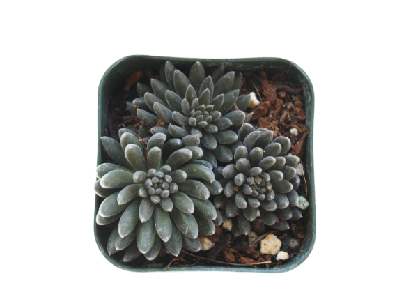 This plant is a rather small succulent. The rosettes grow up to about 4-inches tall and are about 1-1/2-inches diameter.