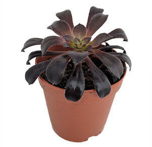 This plant has deep brown leaves that are almost black. It grows up to 6-inches tall and around 8-inches wide. The Black Prince produces offsets (chicks) that start out green, but darken over time.