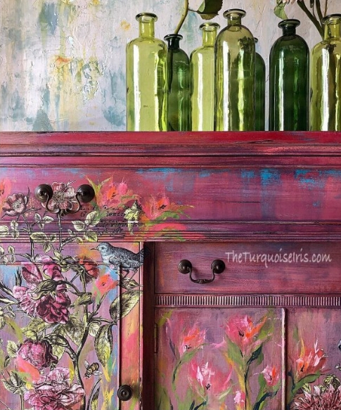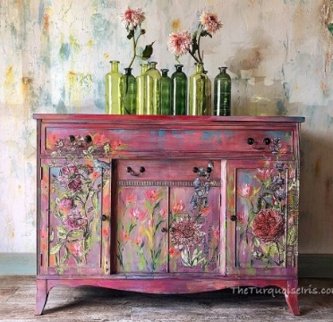 When our boys were first born, customizing a dresser for each of them was important to me. I hand painted their dressers and covered the drawers in wild fabric prints. I had so much fun creating their dressers! When I spotted this buffet/dresser, it made me want to work on another dresser project. While I’m certainly no artist like the one that painted this gorgeous piece, it has inspired me. You can be sure I’ll be looking for a vintage cabinet at the flea markets I shop, and when I find the perfect piece, I’ll have a fun Winter project to look forward to.