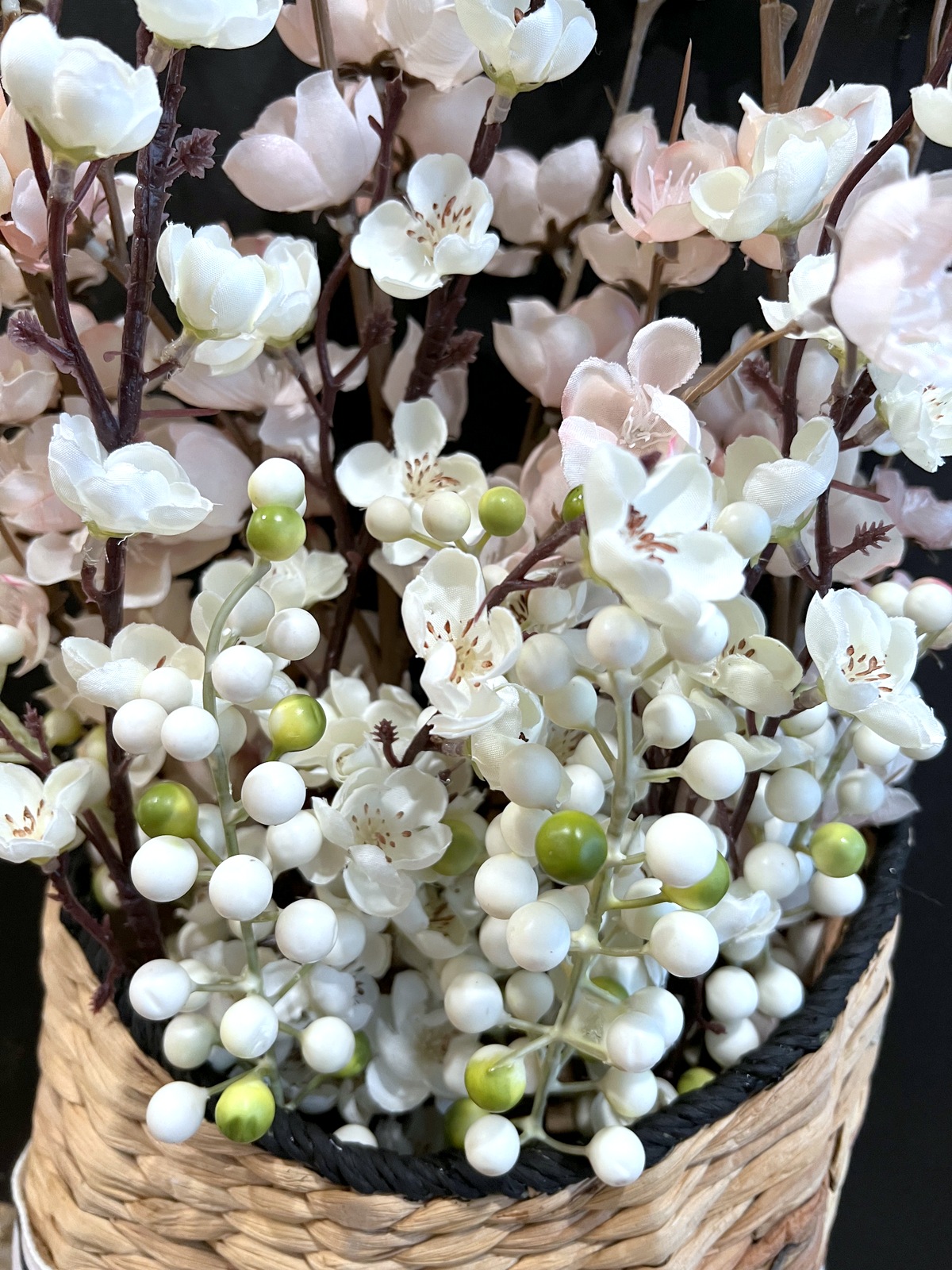 - Artificial Flowers (these are the flowers I used – apple blossoms, plum blossoms, and berries)