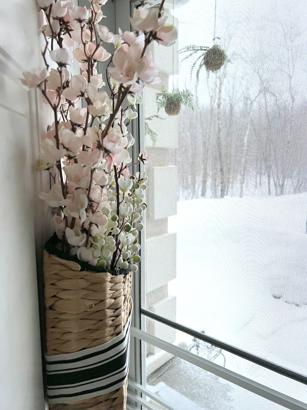I hung the basket on our door – even though it’s currently snowing. Maybe this will be the Spring talisman we need.