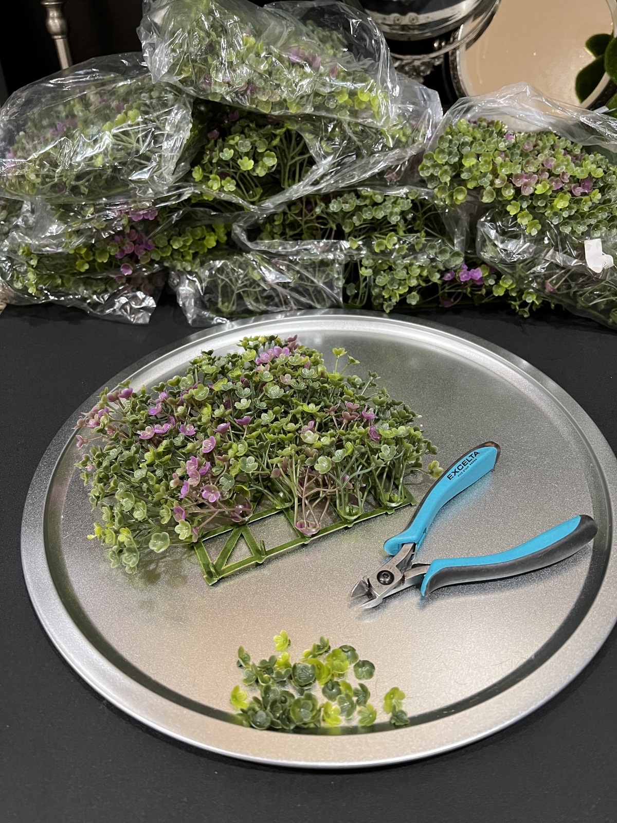 - Pull off each ‘sprig’ of clover from the clover mat, then use a wire cutter to behead the clovers from the stems