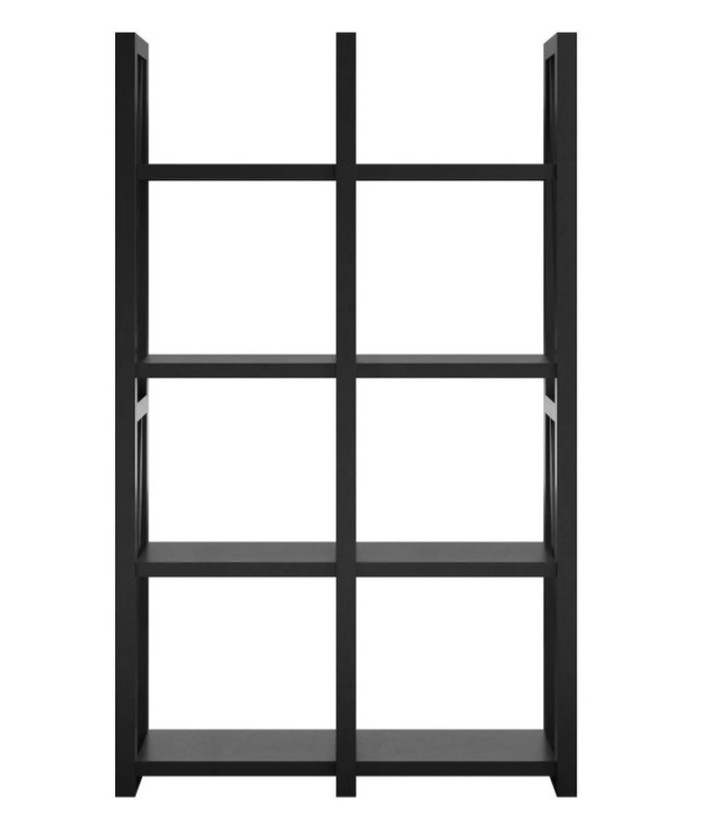 The main level has a partially open wall to the second level, making the space open and airy. The ceiling in the main level is open beams from the floor of the loft above. We’ll be keeping the beams exposed on this ceiling open, but I’ll be painting the flat parts a matte black, keeping the beams the natural wood finish.There is currently a wall of open shelves between the main level and the second level. These open shelves are painted a matte black. We’ll be keeping this wall open, but will be adding more shelves.