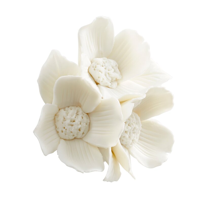 Each flower is made of ceramic or porcelain with an off-white glaze finish, and is around 3-1/2″ in diameter. Wall mount hardware is included with each flower. Choose your favorites and hang them together for a dramatic effect.