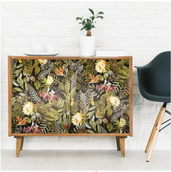 If you aren’t ready to go quite that bold as hanging this on a wall, use the wallpaper to recover an old dresser or cabinet for a posh new look. You could also use a roll of the wallpaper to line a serving tray, recover a door, embellish picture frames, and anything else you want to use to create a new look in your home. Be creative. Be bold!