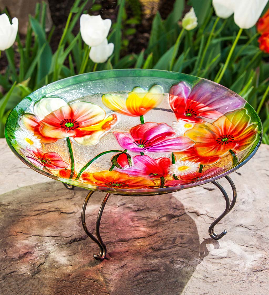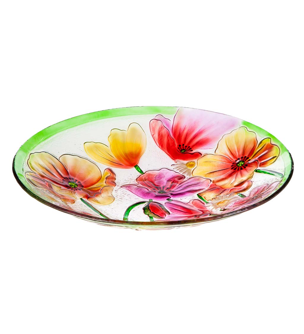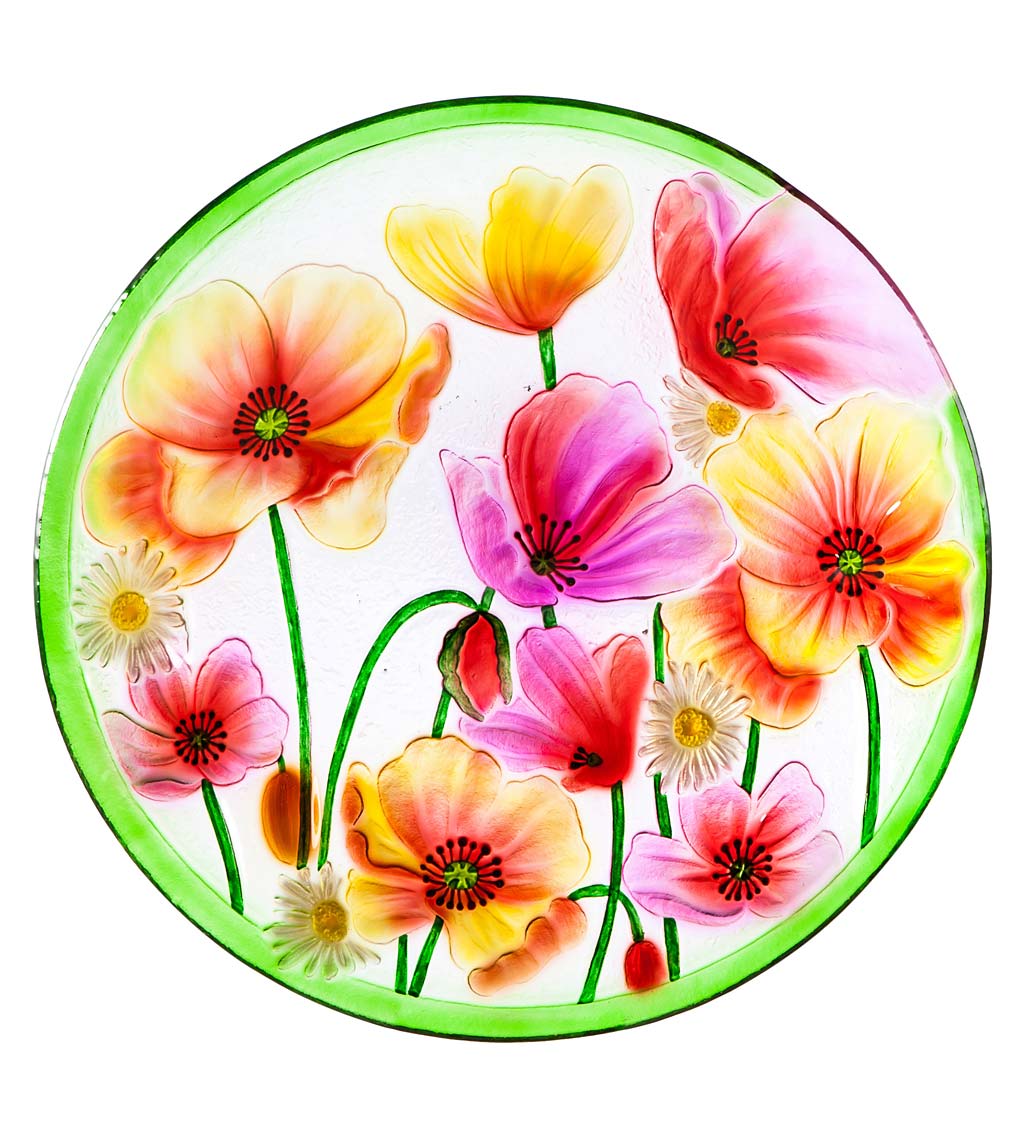 #3 – Poppies Glass Bird Bath Bowl