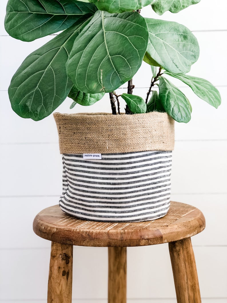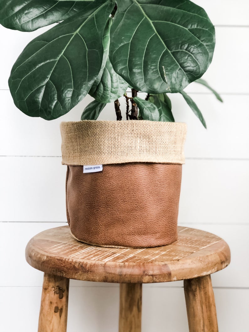 I spotted these linen, canvas, and leather plant pot covers this week and couldn’t decide which one I like the best – so I included several of them here to share with you. Aren’t they great?!