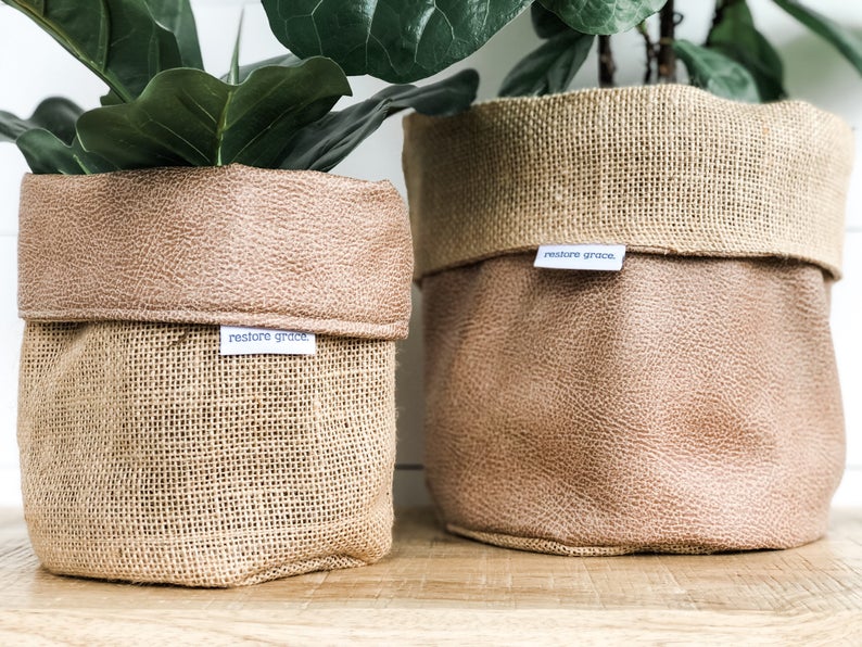 I spotted these linen, canvas, and leather plant pot covers this week and couldn’t decide which one I like the best – so I included several of them here to share with you. Aren’t they great?!