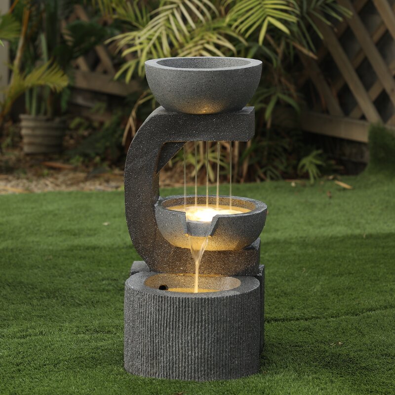 This three-tier fountain adds to the relaxing atmosphere of any deck, porch, or patio.