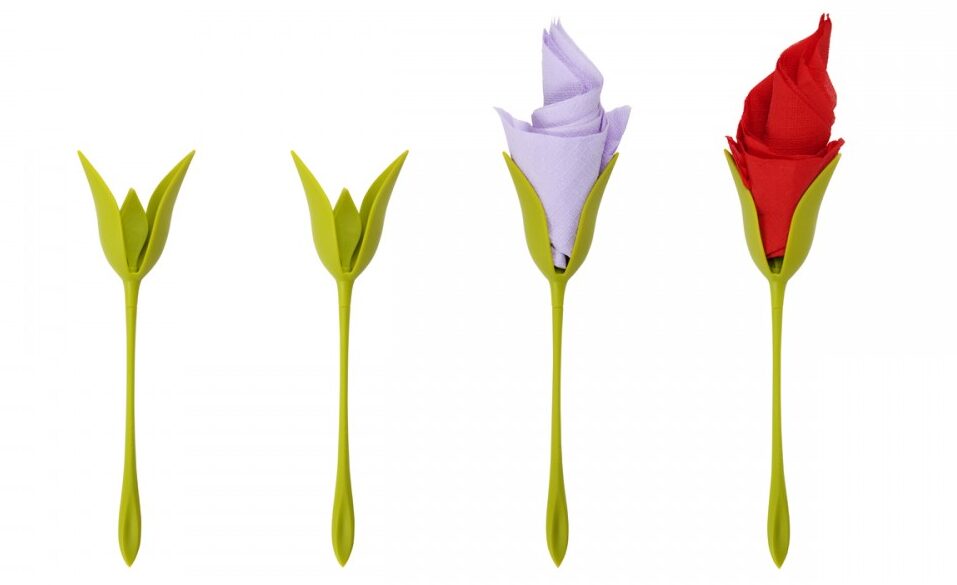 These bloom napkin holders are so much fun! Just fold a napkin (paper or cloth) in half and insert into the bloom holder. Twist the stem and you’ve turned the napkin into a flower!
