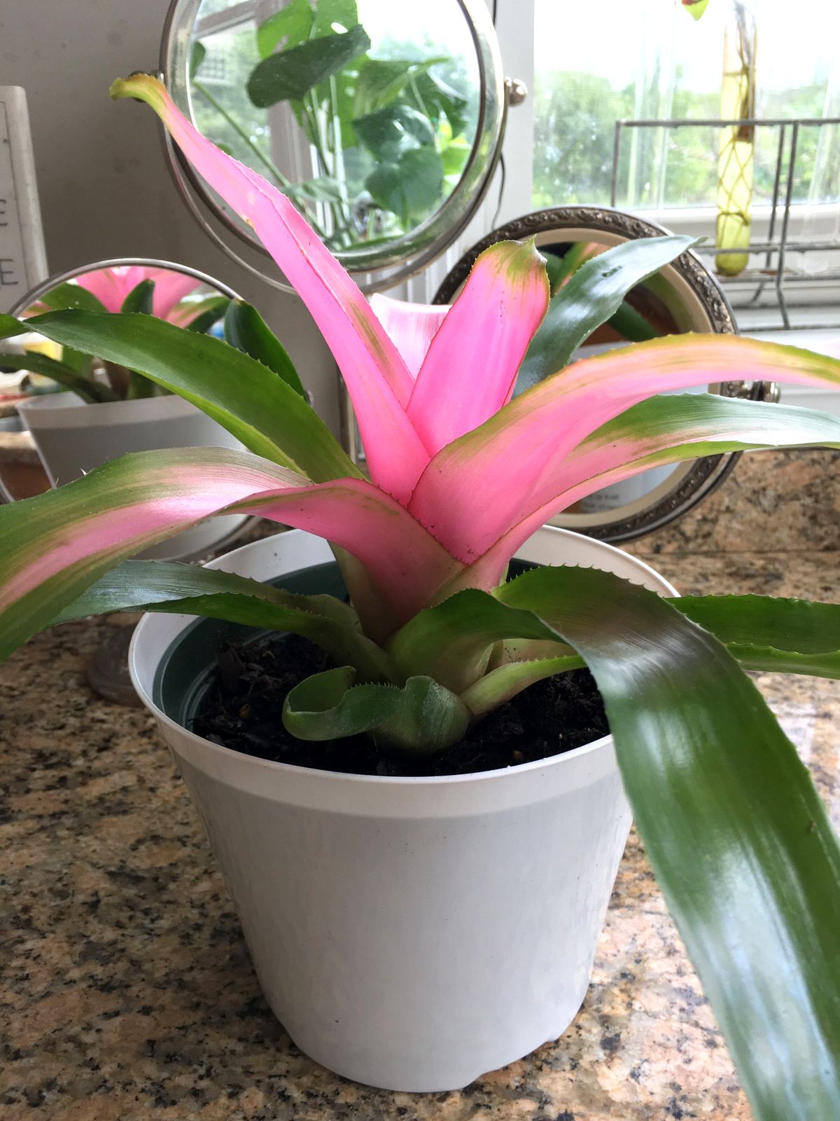 Like other colorful bromeliads, the plant needs to receive plenty of bright filtered light in order to keep it’s brilliant color. Filtered light is best, as direct sun can cause the leaves to burn. This plant will also do well in shady areas with less light, but the pink color won’t be quite as bright.