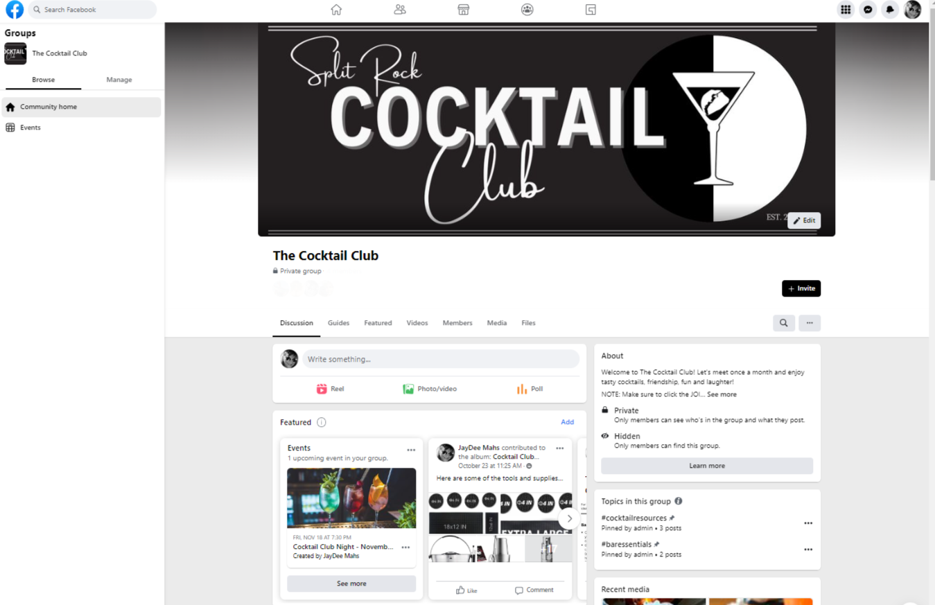 I created a Facebook Group for our Cocktail Club. This allows us to post our monthly club get-together and everyone has a chance to see who is planning on attending that month.