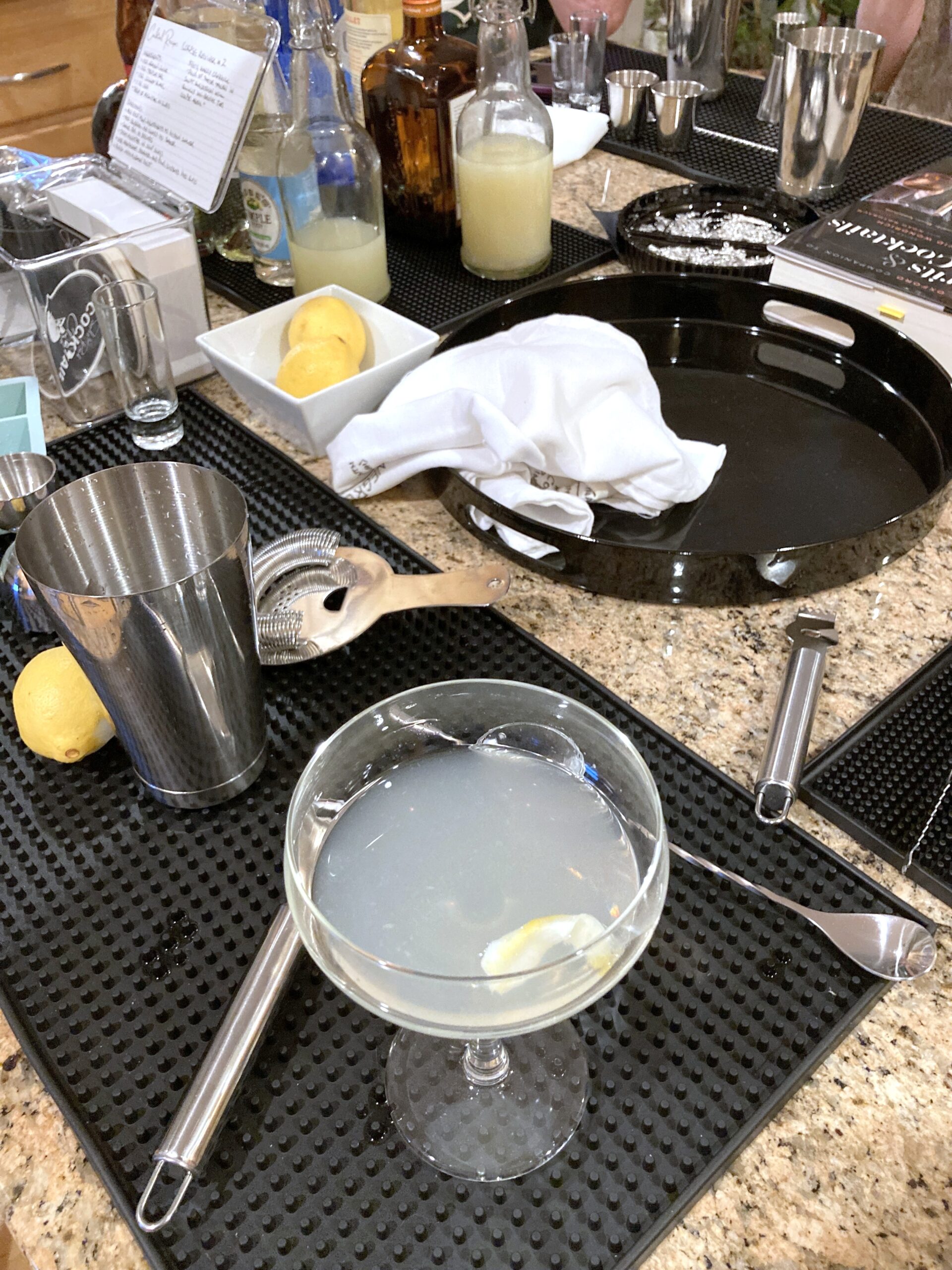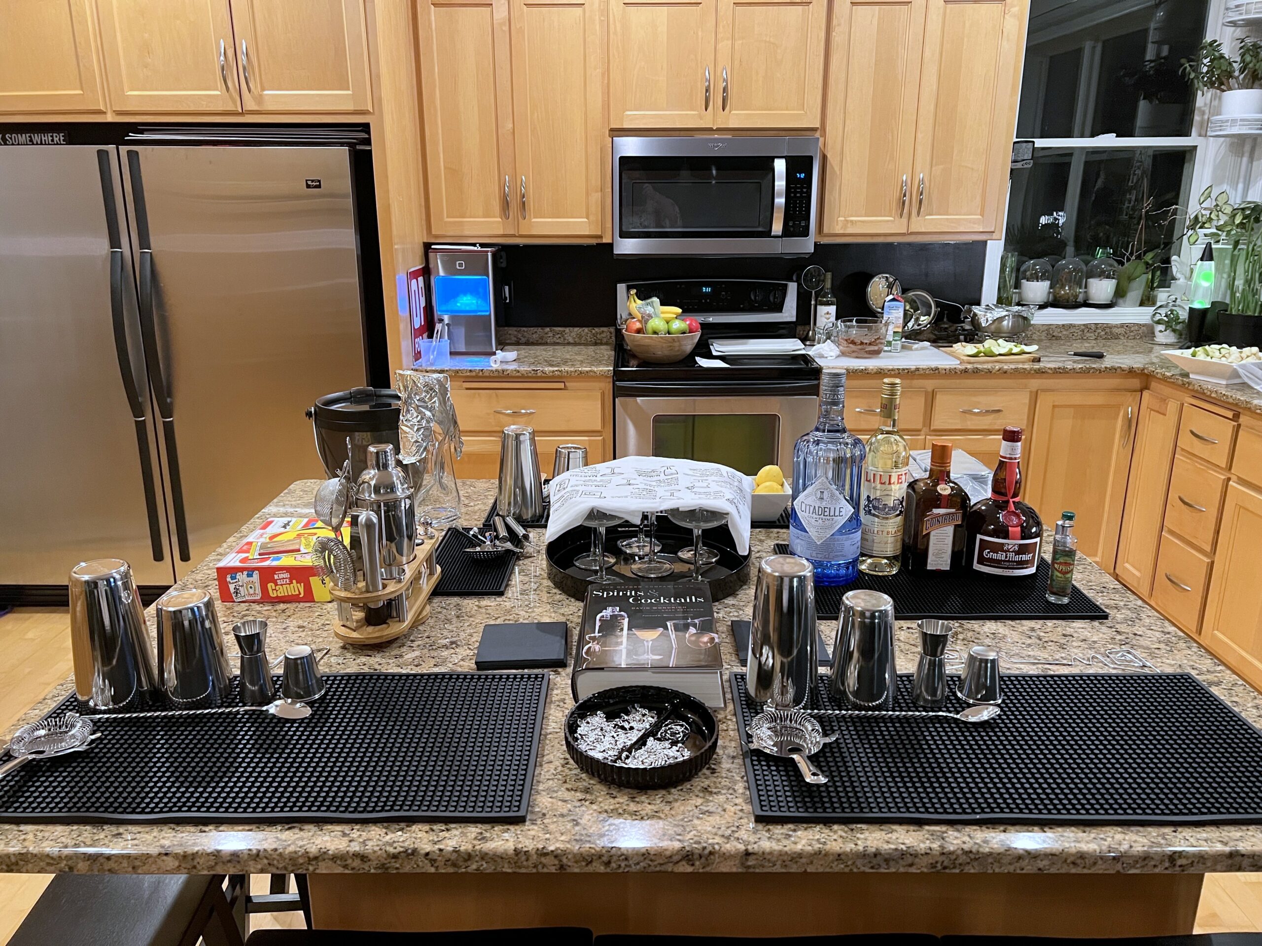 The Bar – When you’re ready to start, have your guests sit at your center island, kitchen or dining room table, or wherever you’d like to mix your cocktails and use as your bar. We like using our center island for this. Kudos to those that have an actual bar to use!