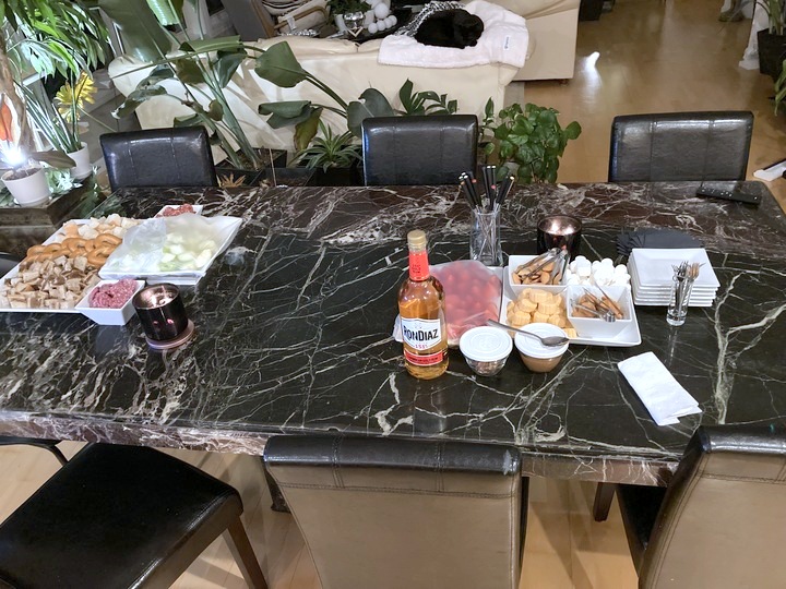 The Bar – When you’re ready to start, have your guests sit at your center island, kitchen or dining room table, or wherever you’d like to mix your cocktails and use as your bar. We like using our center island for this. Kudos to those that have an actual bar to use!