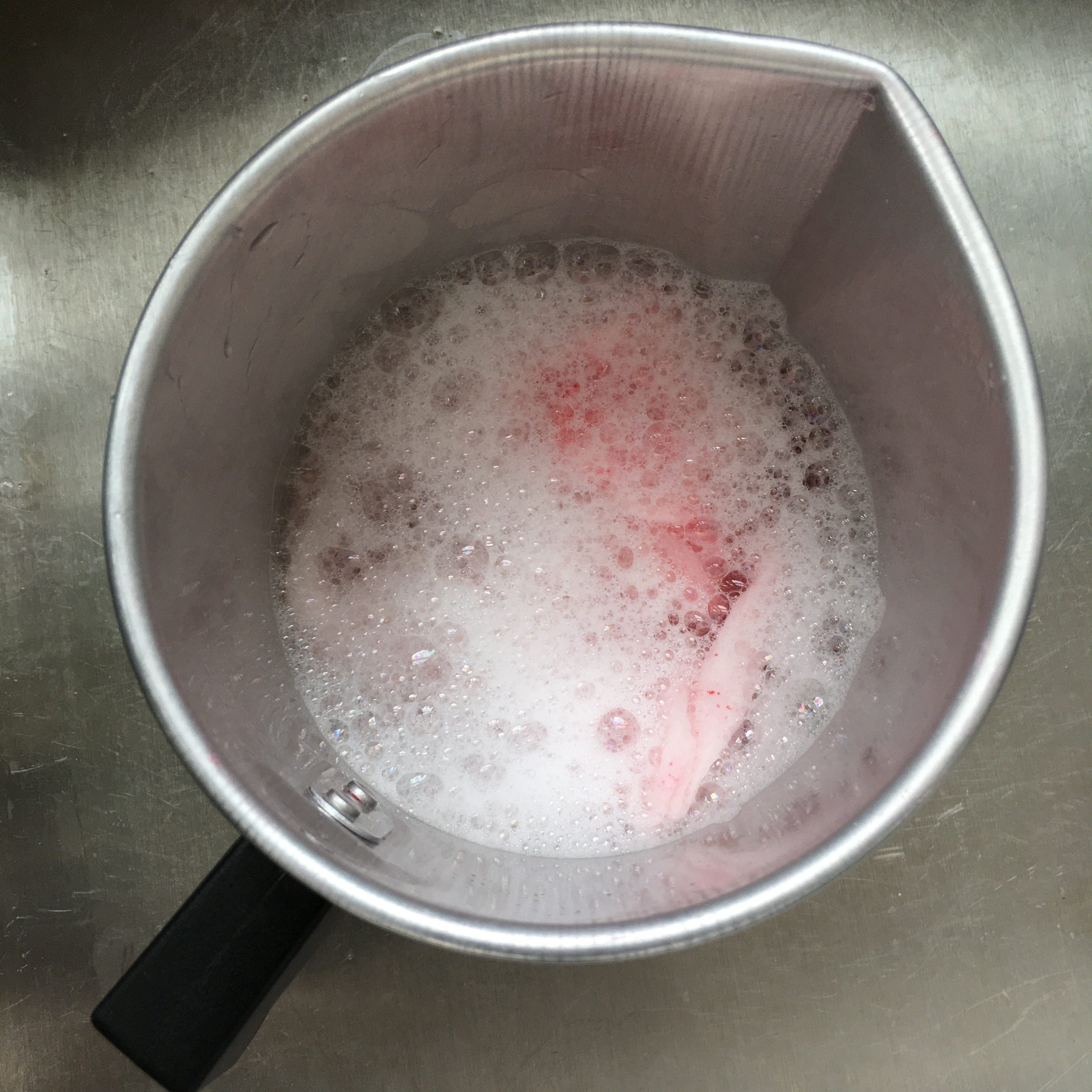 - (Optional) While the melting pot is still in the saucepan on a heat source, add a dye block or liquid dye to color the wax, Stir gently until the dye is melted.