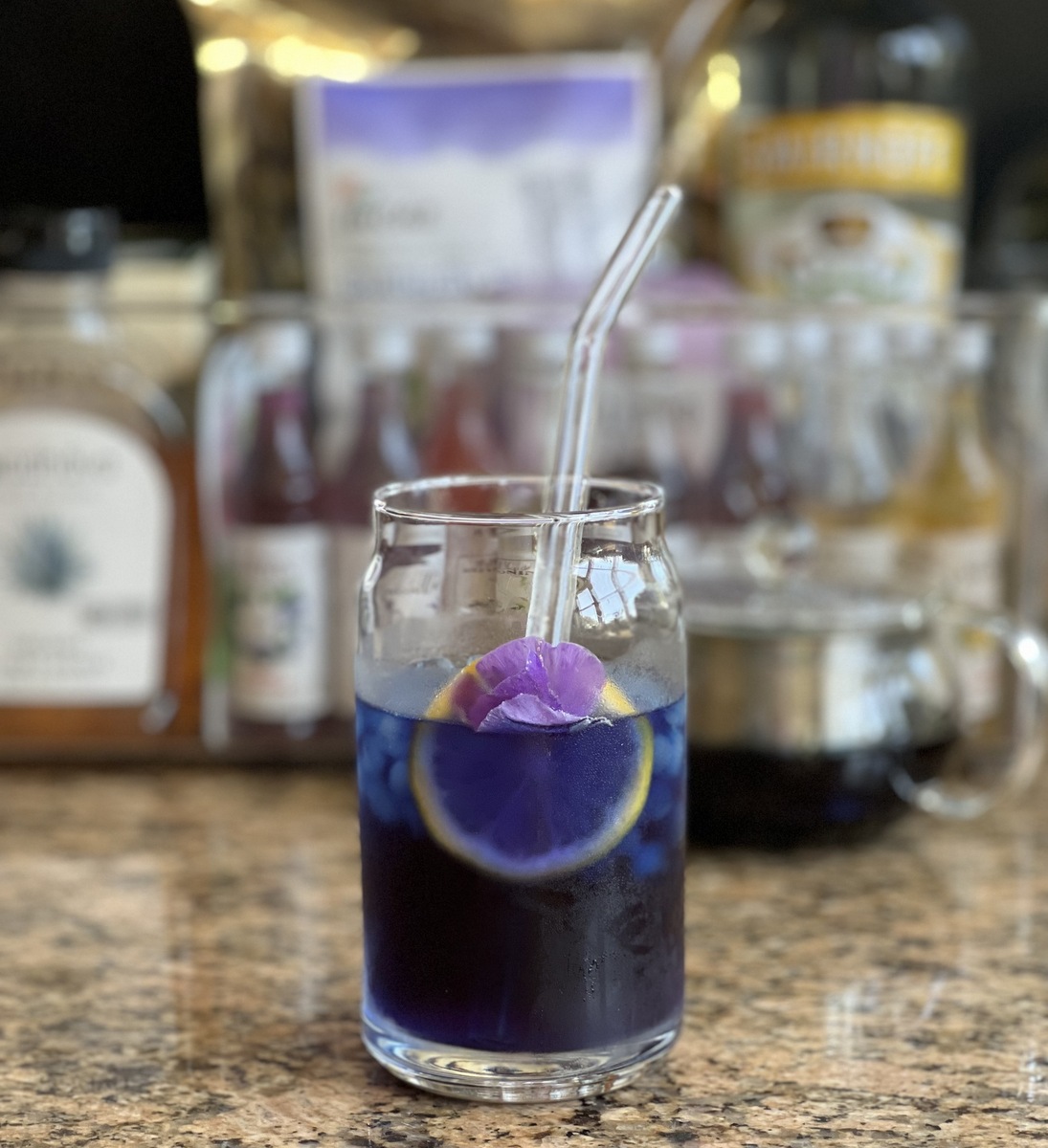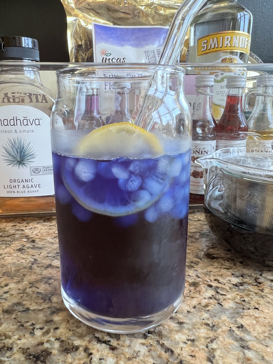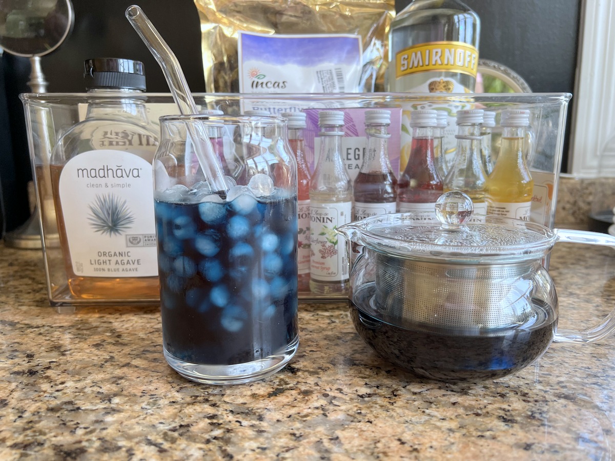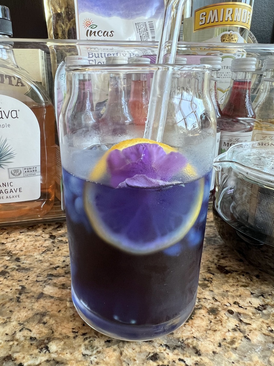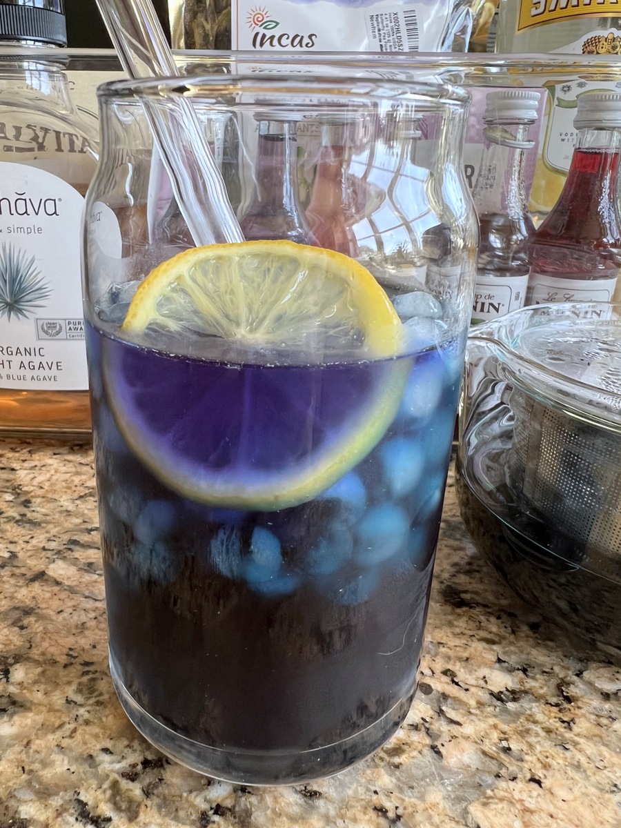 – Sparkling Butterfly Pea Tea: Pour a can of Raspberry Sparkling Water over ice, then add 1 teaspoon brewed Butterfly Pea Tea and 2-3 teaspoons Vanilla Syrup. Stir and serve.