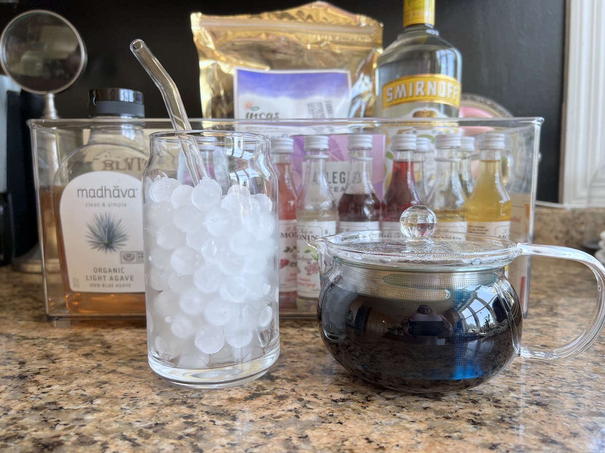 - Allow the brewed tea to cool for a few minutes before adding to ice.