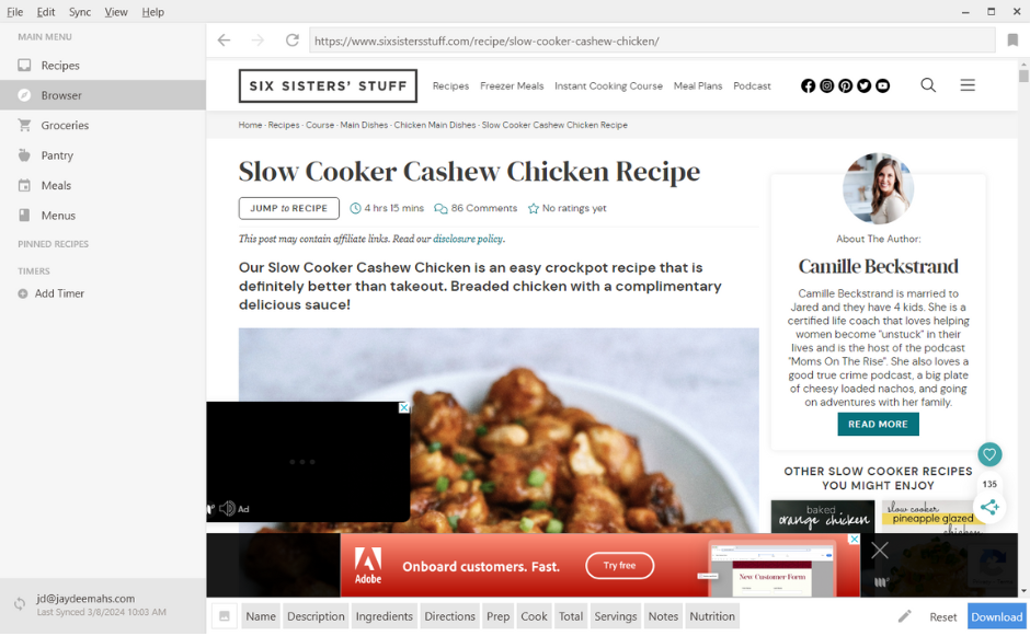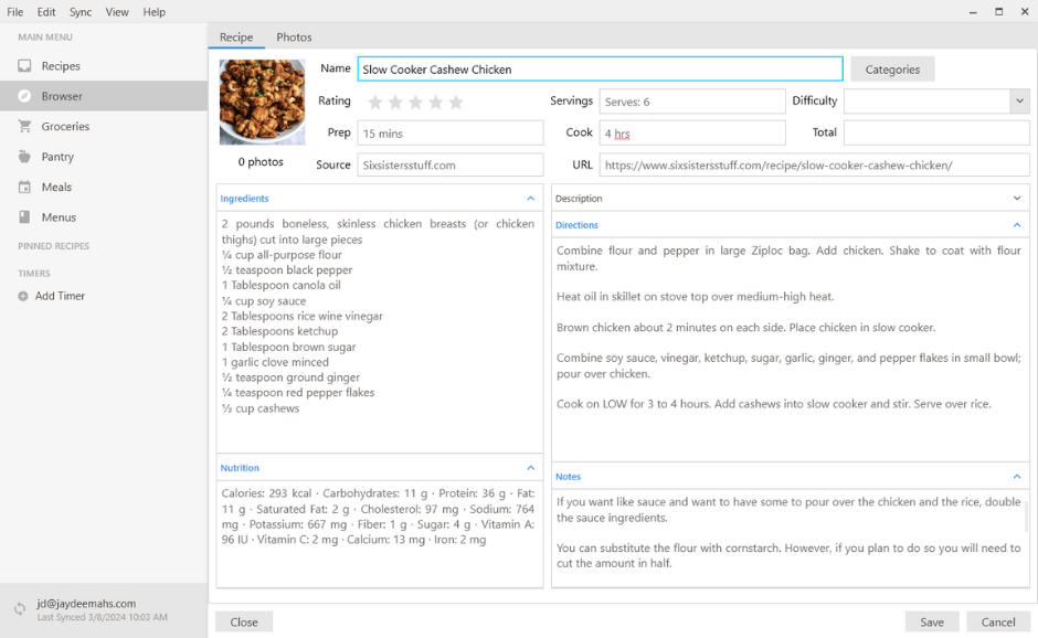 As I mentioned, Paprika syncs across several platforms and devices. I like to use the Windows app as my “home-base” for Paprika. Not only is it easier for me to type on a full-size keyboard, I also find the Windows app to be the easiest way to save recipes I find online. I can also keep the Paprika app open all the time, while I view several open windows for recipes, or while I read recipe newsletters, or while I add items to my online-grocery list for grocery pickups. Having the larger screen (or screens) allows me to accomplish more at one time.