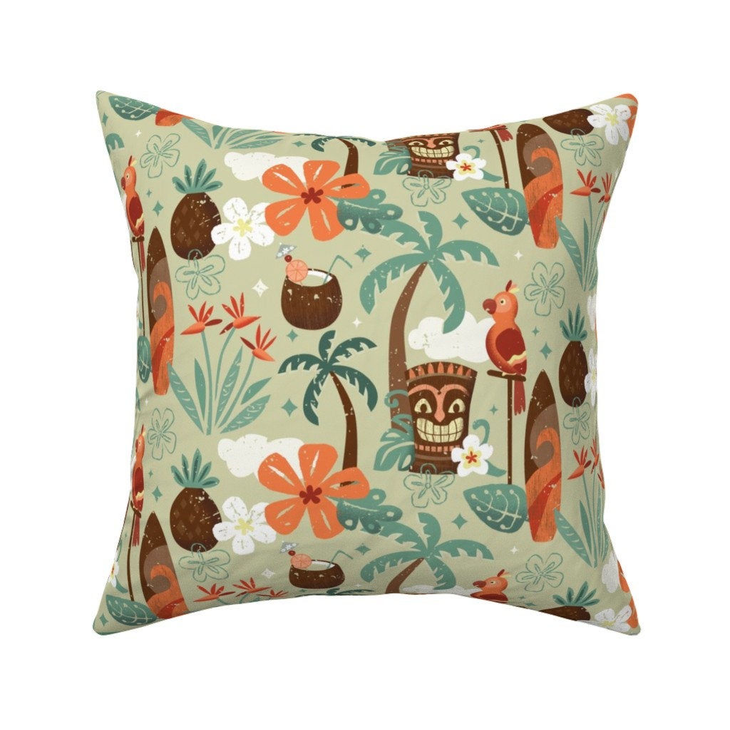 Here are some fun tiki inspired pillows, perfect for your next patio party! Use the pillows on your patio furniture where they’re sure to be a conversation piece among your guests.