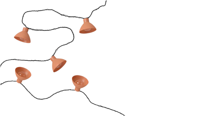 I love the metal terra-cotta colored lamp shades on this light string – they make the light string look so unique, especially when so many patios these days have Edison light bulb light strings. Do something different, and go with this light string!