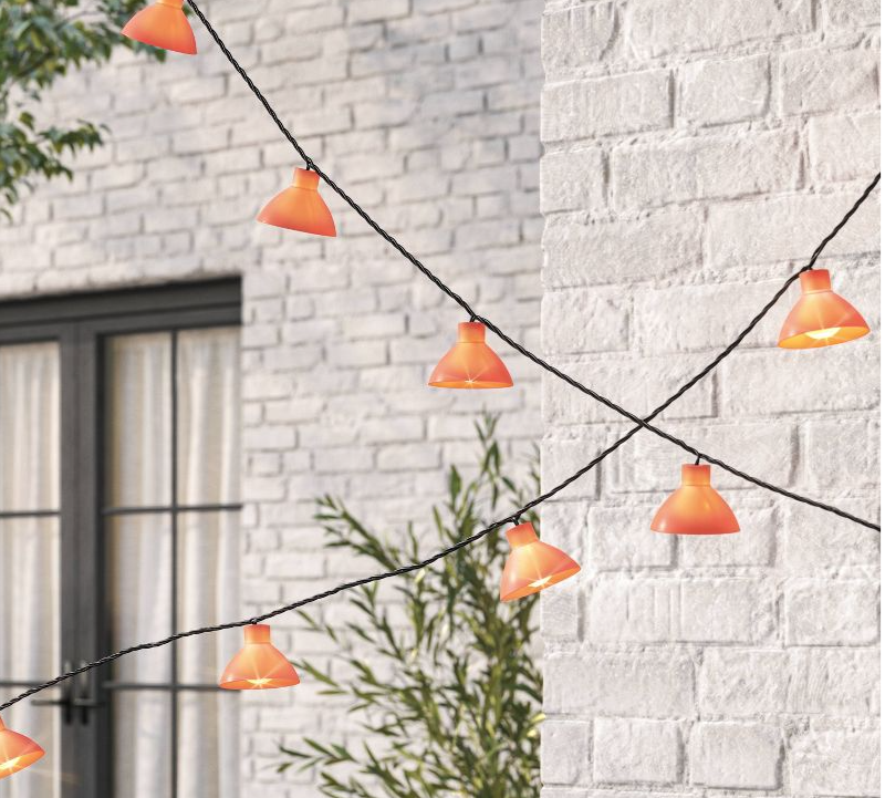 I love the metal terra-cotta colored lamp shades on this light string – they make the light string look so unique, especially when so many patios these days have Edison light bulb light strings. Do something different, and go with this light string!