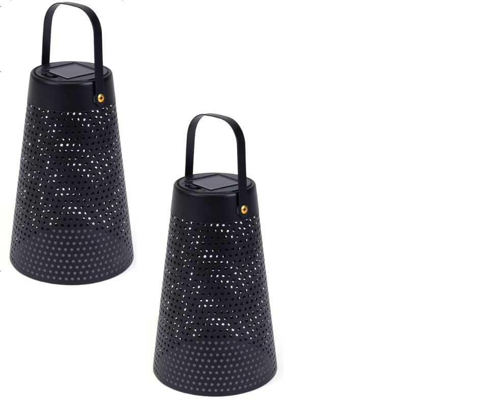 These solar lanterns are so cool! The black metal fits with any decor and because they are solar, they’ll work outside in any sunny location. And the best part? At night they cast the most intricate patterns of light wherever you place them. Hang them over a sidewalk, or set them on a table – either way, they look great. The lanterns add a soft warm light to your space. The light is bright enough to see the patterns, yet not so bright that they distract from star gazing at night. The lanterns have handles, so you can even carry them from place to place. Relax by this soft light while enjoying starlit evenings on your deck, porch, or patio this Summer!