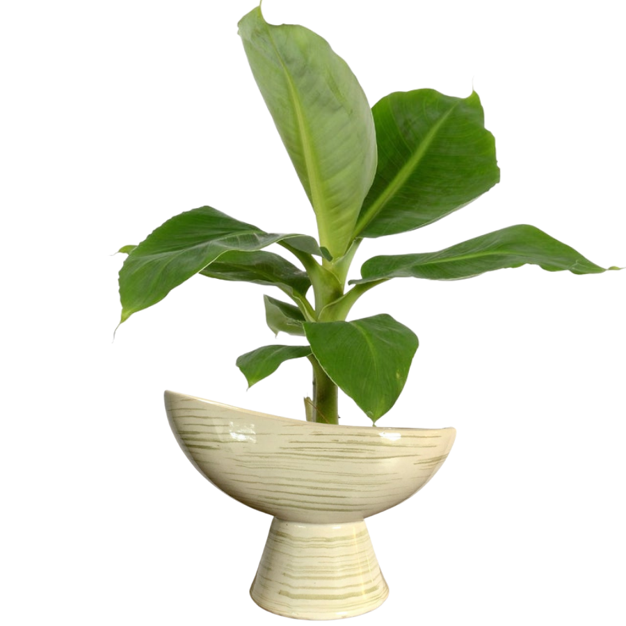Dwarf Cavendish Banana Plant and White and Green Pedestal Planter