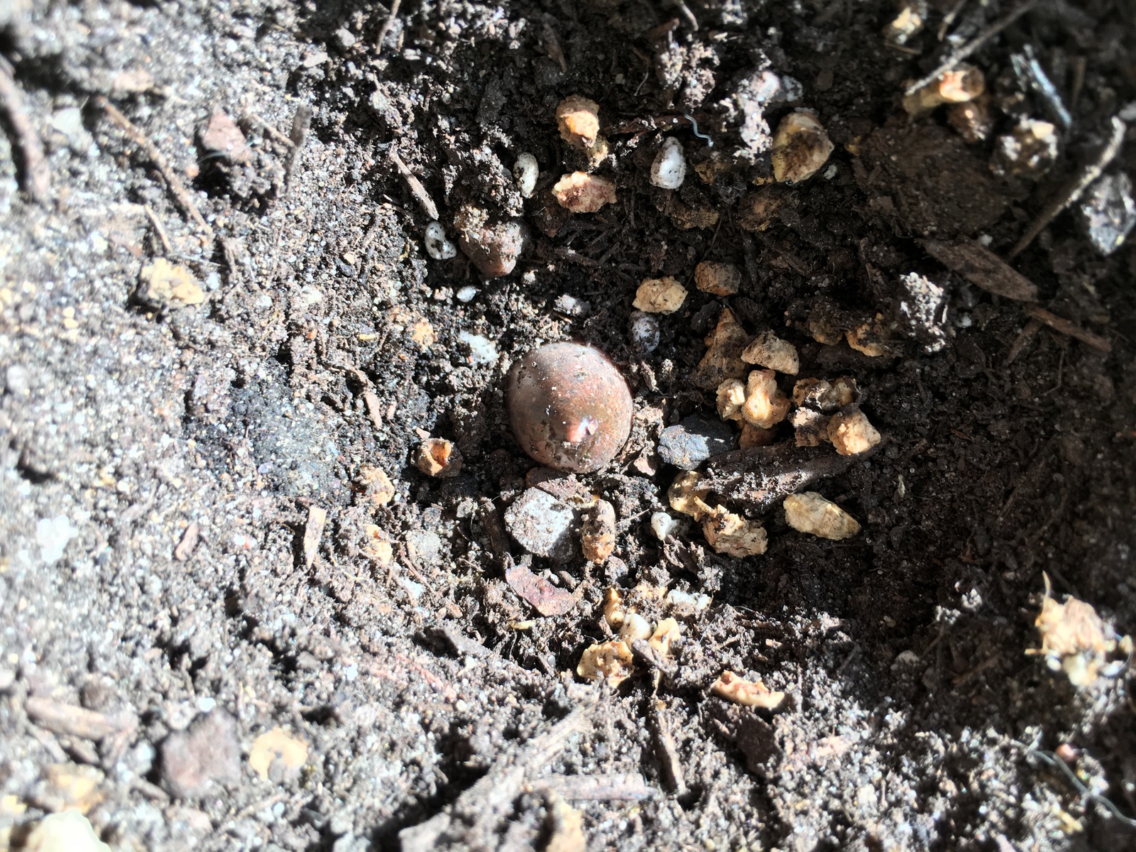 1/13/21 (1″) – I took a peek at my Voodoo Lily. The crispy brown leaf had practically fallen off, so I gently pulled on it and off it came! Beneath the dead leaf, I spotted the little pink nub of new growth! The pink nub measured 1″ tall within the shallow cavity that was formed when I pulled the dead leaf out. I brought the planter back upstairs and placed it right next to my desk – which sits by huge floor-to-ceiling south-facing windows. Let the growth begin!