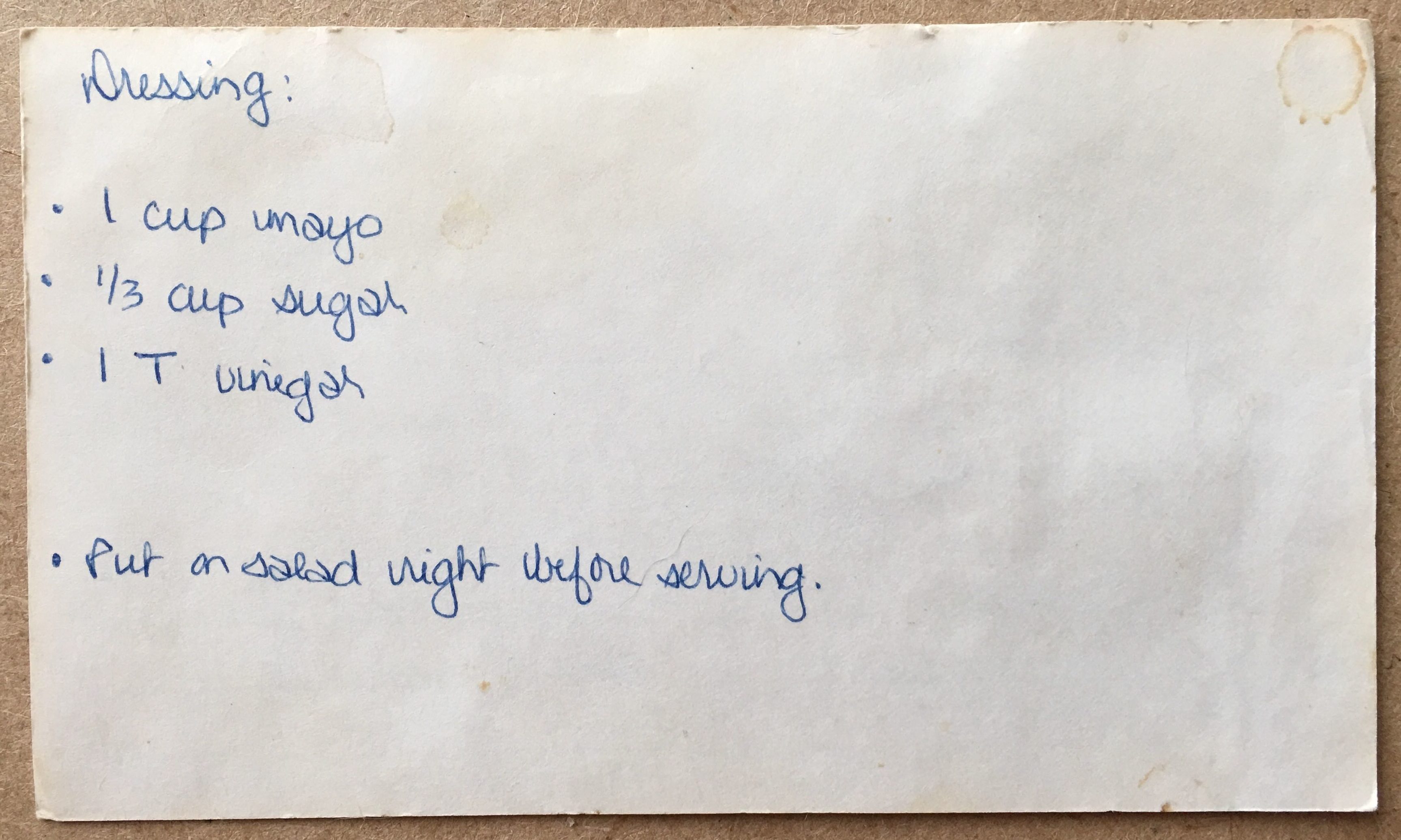 Yes. Best salad ever! I’m old and google search sooo much better than digging through my recipes. I have it somewhere.